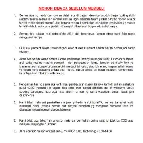 Tidak termasuk baju daleman dan aksesoris seperti , kalung, bros, ikat pinggang, gelang dll